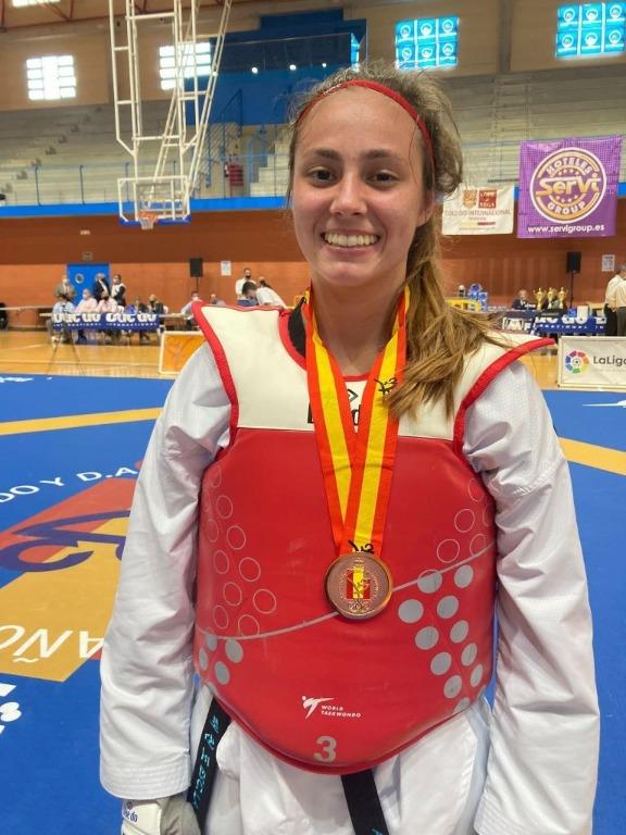 Andrea Suárez, del Club Escuela Taekwondo, se alzó en días recientes con la medalla de bronce en el Campeonato de España Absoluto 2021, en la categoría de -67 Kg, celebrado en Benidorm, un notable éxito que confirma la solidez en pruebas de alta competición de la deportista del club lagunero.