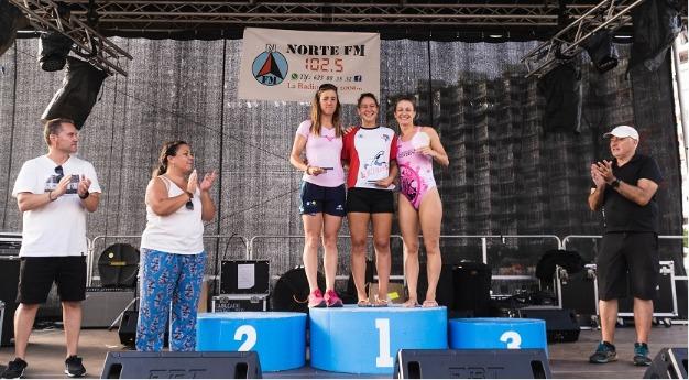 En féminas, María Expósito fue un reloj. La nadadora del Teneteide, acostumbrada a competir en piscina, realizó una exhibición con unos eficientes ciclos que capeaban el oleaje que ostentaba el litoral lagunero. Al final, batió la mejor marca de la prueba con un impresionante 27:38. Tras ella, Melina Alonso (30:55) y Pino Pérez (31:11). El podio femenino estuvo a un nivel superlativo para entrar cinco minutos antes que el ‘pelotón’.